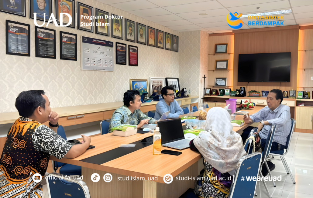 Rapat yang dilaksanakan di Ruang Rapat FAI UAD ini dihadiri oleh Wakil Dekan Bidang AIK, Akademik, dan Kemahasiswaan, Ferawati, S.S., S.Psi., M.Hum., serta Wakil Dekan Bidang SDM, Keuangan, Kehartabendaan, dan Administrasi Umum, Dr. Yoyo S.S., M.A. Hadir pula Kepala Program Studi S3 Studi Islam, Prof. Dr. Siswanto Masruri, M.A., Sekretaris Program Studi S3 Studi Islam, Dr. Fandi Akhmad, S.Pd.I., M.Pd.I., dan staf administrasi program studi, Pradika Indrawan, S.T. Kehadiran jajaran lengkap ini mencerminkan komitmen kuat FAI UAD dalam mendukung keberlanjutan dan penguatan Program Doktor Studi Islam sebagai salah satu program unggulan fakultas