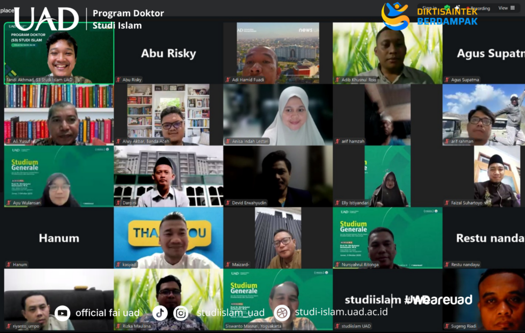 FAI NEW – Program Studi Doktor S3 Studi Islam Fakultas Agama Islam Universitas Ahmad Dahlan (FAI UAD) kembali menggelar kegiatan akademik penting berupa Koordinasi Judul dan Calon Promotor bagi mahasiswa semester II pada Kamis 09 Oktober 2025. Kegiatan ini dilaksanakan secara daring melalui Zoom Meeting dan diikuti oleh seluruh mahasiswa S3 Studi Islam sebanyak 27 peserta.